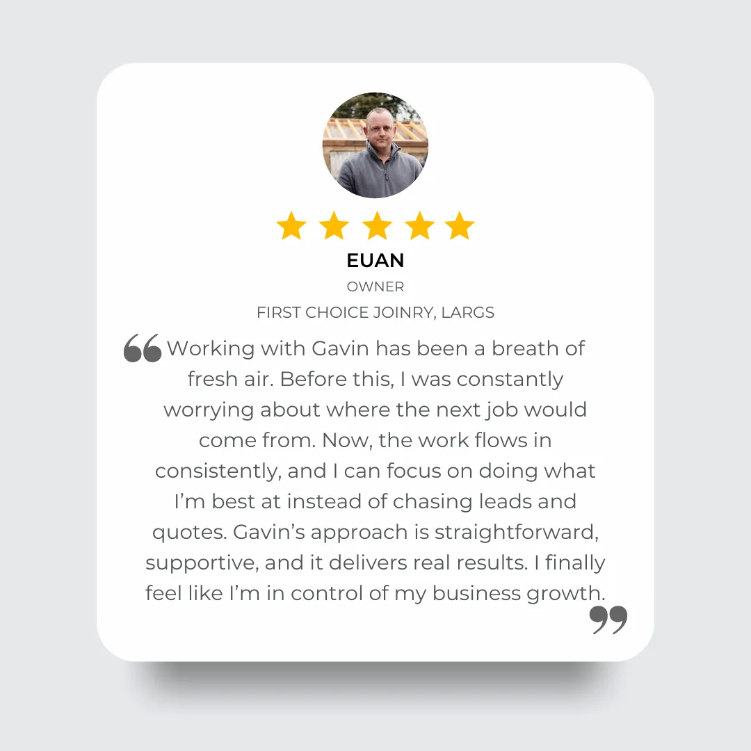 We set up simple systems that reply to new leads, follow up automatically, and get them booked into your diary — without you chasing.